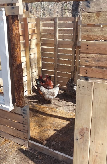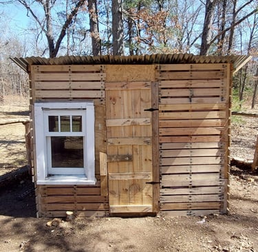 I upcycled free pallets that were going to get thrown away into a functional chicken coop. The window was sitting out by the trash as I was driving down the road and knew it would be a perfect fit for the pallet coop!