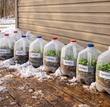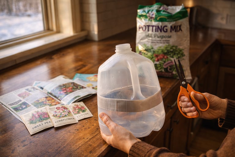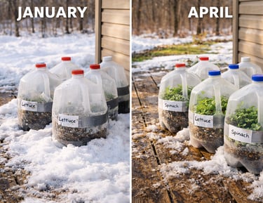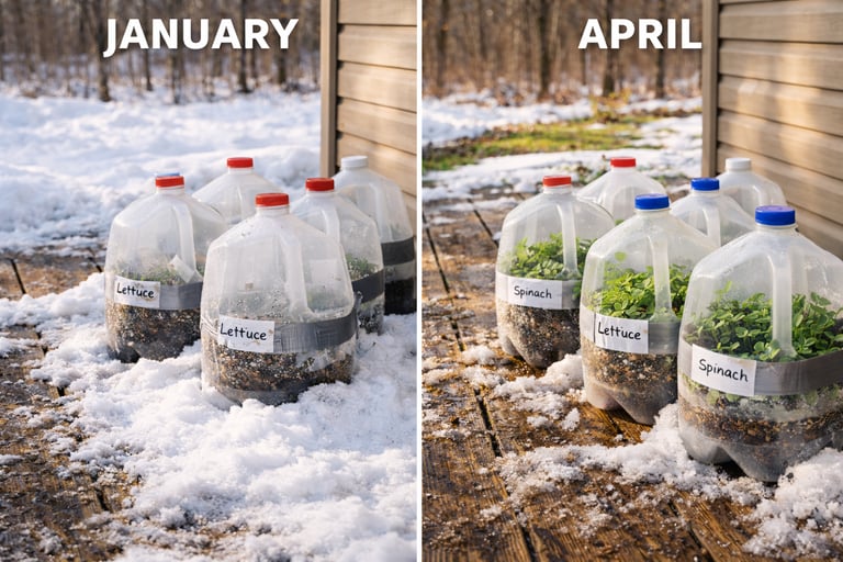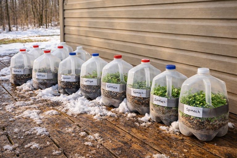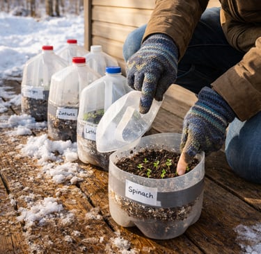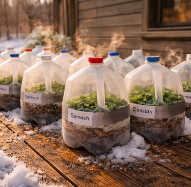 A realistic guide to starting your garden in January using milk jugs and determination—no greenhouse, grow lights, or indoor space required.