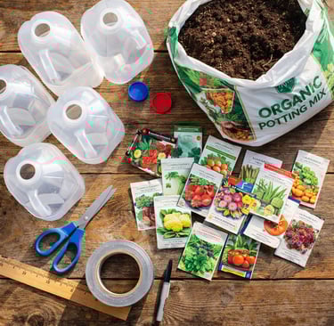 This weekend: Gather supplies (containers, soil, seeds, tape, scissors). Spend an hour setting up 3-5 jugs. Put them outside.