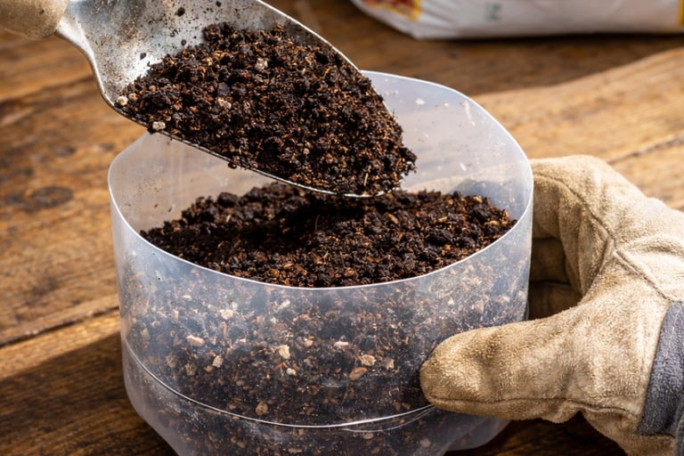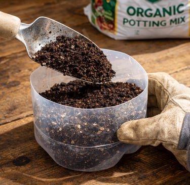 Add about 3-4 inches of moistened potting soil to the bottom half. Not soaking wet, not bone dry—think "wrung-out sponge" moisture level. You should be able to squeeze the soil and have it hold together without water dripping out.
