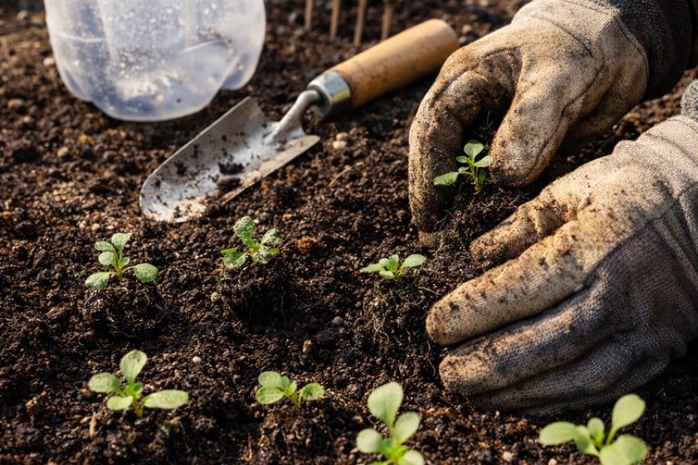 Gently separate the seedlings, trying to keep roots intact. Some root disturbance is fine—they're tough.